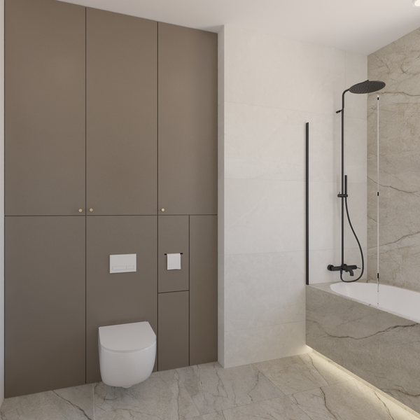 Po otrzymaniu pierwszych wizualizacji możliwe są maksymalnie 2 zmiany dotyczące materiałów, kolorów i elementów ruchomych wnętrza (wizualizacja nie obejmuje: pralni, pomieszczeń gospodarczych, garderób).