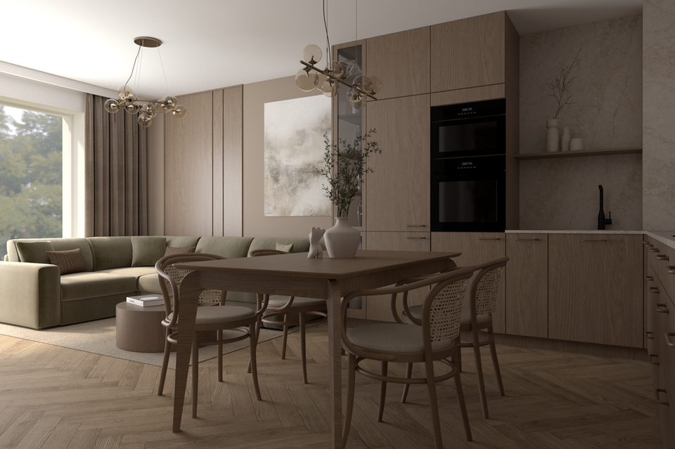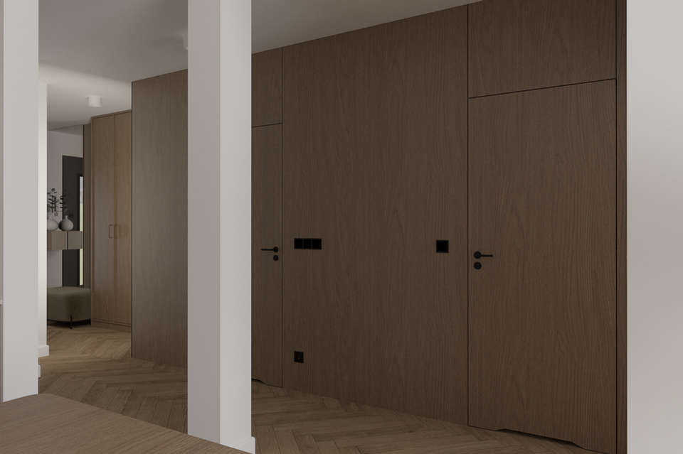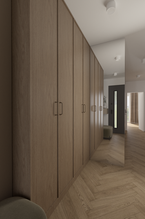 Po otrzymaniu pierwszych wizualizacji możliwe są maksymalnie 2 zmiany dotyczące materiałów, kolorów i elementów ruchomych wnętrza (wizualizacja nie obejmuje: pralni, pomieszczeń gospodarczych, garderób).