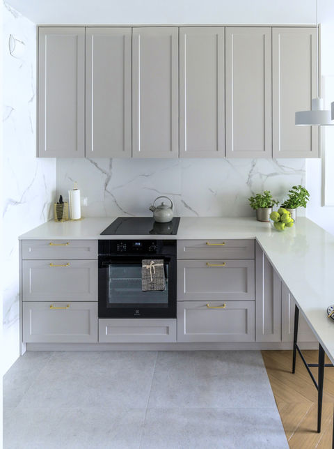 szczegółowe widoki ścian wybranych pomieszczeń (głównie kuchnia, łazienka),
